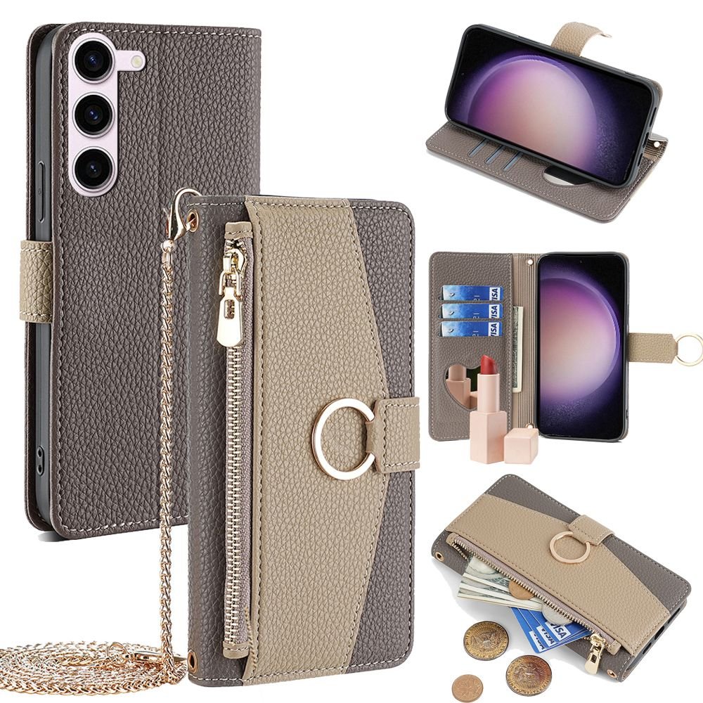 PU Leather Zipper Wallet Case for Galaxy A55 A54 A35 A25 A15 A05 5G/4G, Xcover7 5G with Chain Lanyard Strap Mirror Bracket