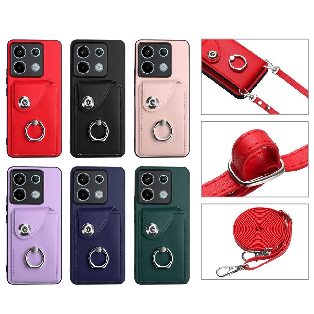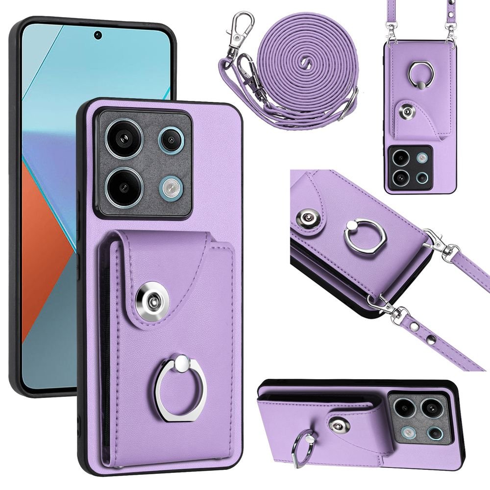 the PU Leather Wallet Case for Xiaomi Redmi Note 13, Redmi Note 13 Pro, Redmi Note 13 Pro Plus 4G 5G with Crossbody Strap Lanyard Case